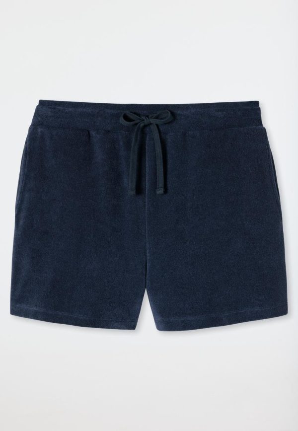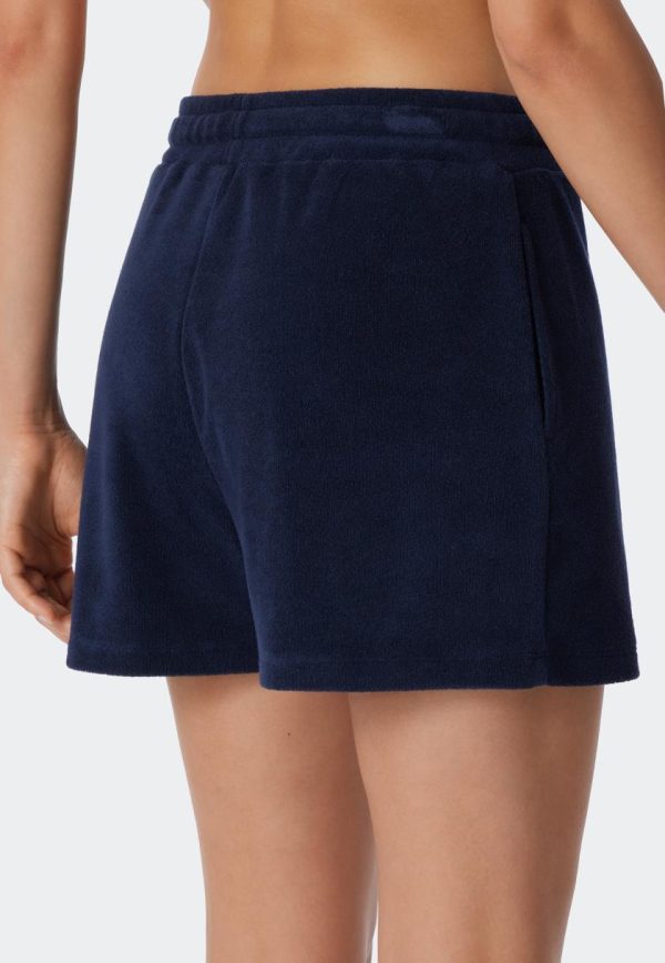 Lust auf einen entspannten Tag am Strand? Wir haben den idealen Begleiter dafür! Diese dunkelblauen Shorts für Damen sind nicht nur wunderbar retro, sondern auch herrlich bequem. Mit ihrem modischen, etwas weiteren Schnitt sehen sie einfach gut aus. Dazu passen der elastische Bund mit komfortablem Bindeband und die seitlichen Taschen. Weicher, griffiger Frottee aus nachhaltigem Organic Cotton macht den Look perfekt. Reinschlüpfen und den Sommer genießen – natürlich in bester SCHIESSER-Qualität!