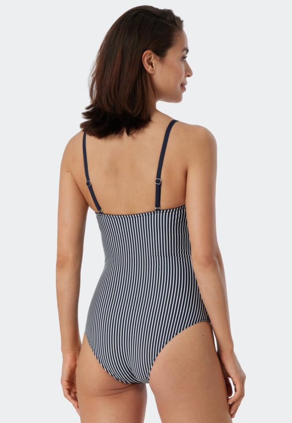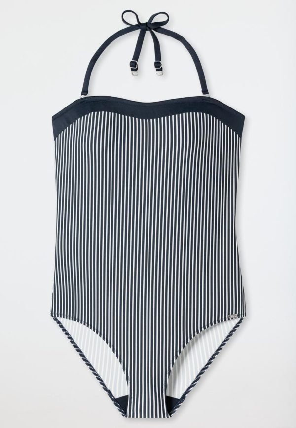 SCHIESSER Badeanzug | Damen Bandeau-Badeanzug Variable Träger Softcups Streifen Dunkelblau Ocean Dive Dunkelblau