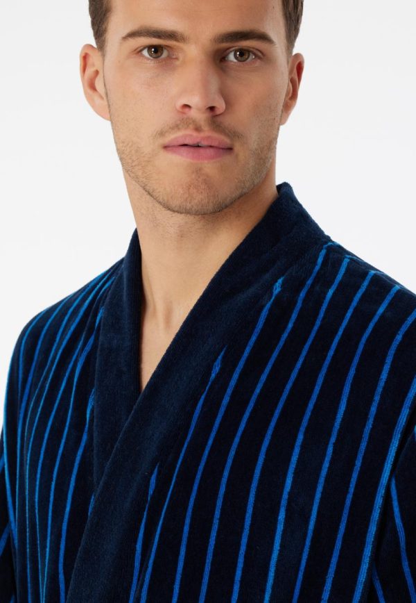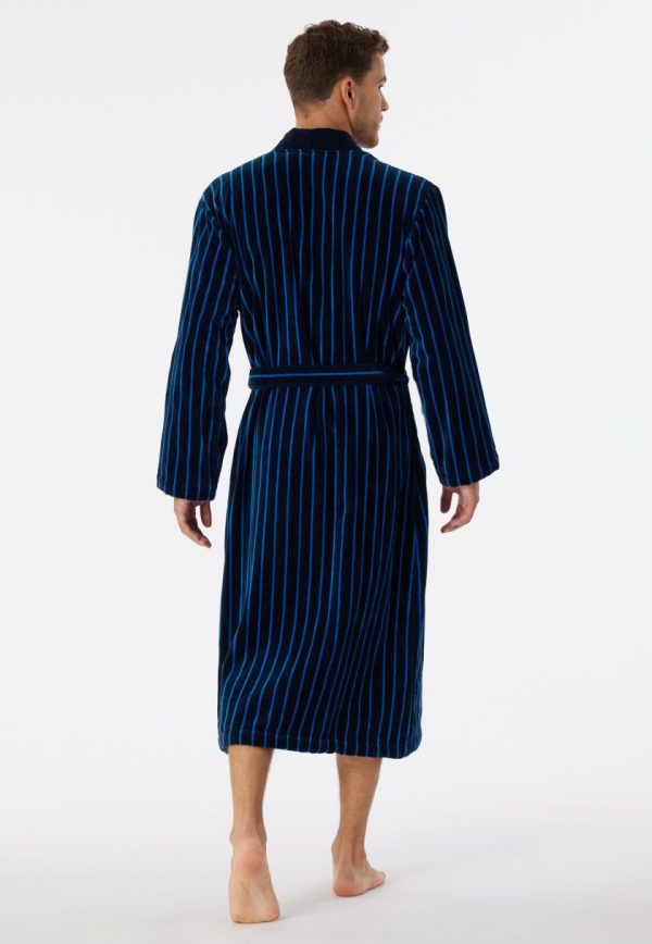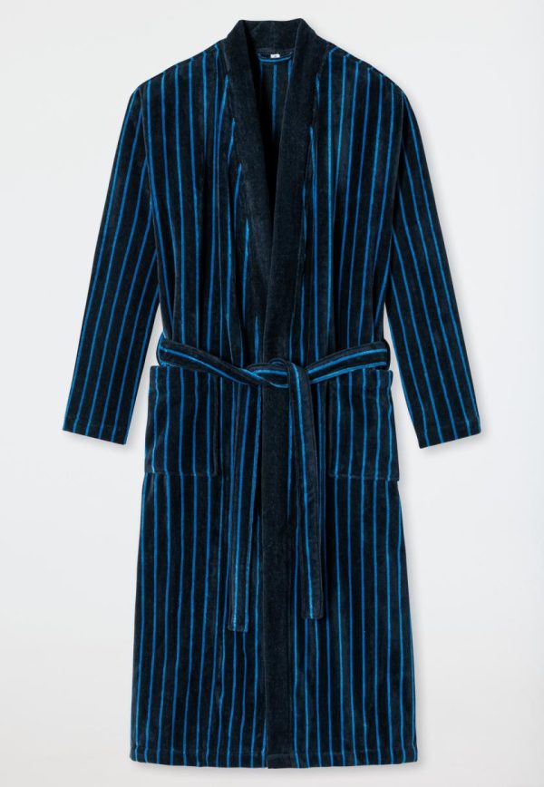 Dieser gestreifte Herren-Bademantel verwöhnt Sie mit behaglichem Material und zeitlos-maskulinem Design. Wärmender Velours aus 100% feinster Baumwolle sorgt hierbei für höchsten Tragekomfort. Die zweifarbigen Streifen unterstreichen den eleganten Look des Mantels. Genau der richtige Begleiter für schöne Wohlfühlstunden daheim – natürlich in bester SCHIESSER-Qualität!