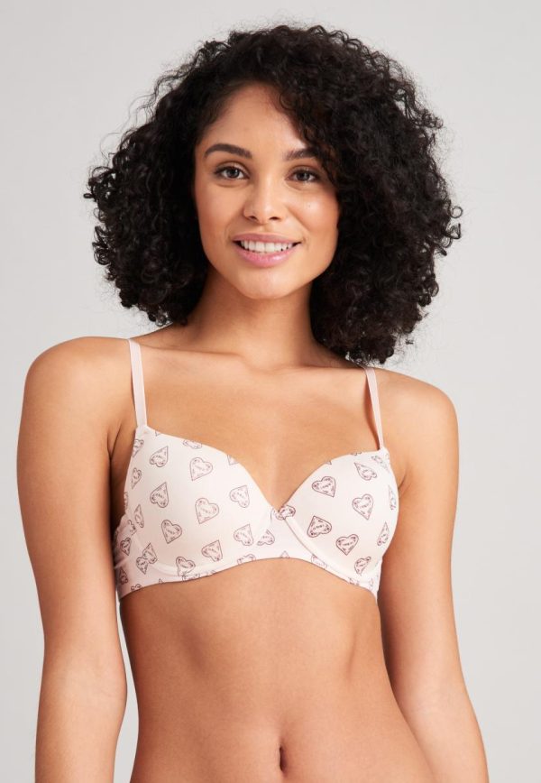 Ein charmanter Hingucker im angesagten Landhaus-Style: Dieser zartrosafarbene Bügel-BH mit Push-up-Effekt aus der modischen SCHIESSER-Serie „I mog di“ zaubert ein Lächeln auf Ihr Gesicht! Ein Alloverprint mit Herzchen und „I mog di“-Schriftzug in Burgund schenkt ihm seinen verspielten Look. Hochwertige Modalware mit Elasthan liegt weich auf der Haut. Die gepaddeten Softcups formen ein wunderschönes Dekolleté. Ein Lieblingsstück in bester SCHIESSER-Qualität!