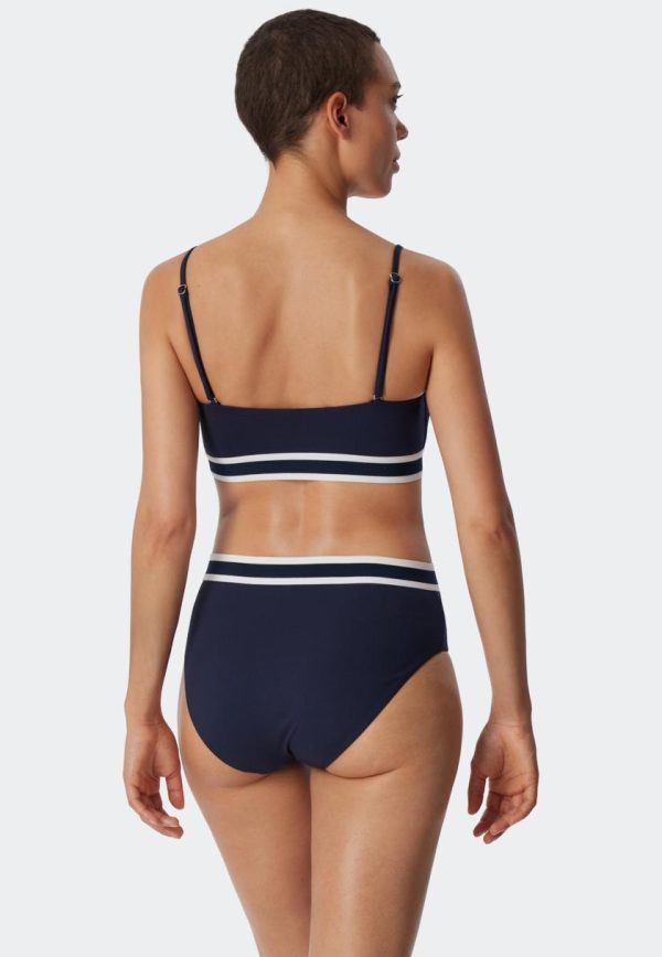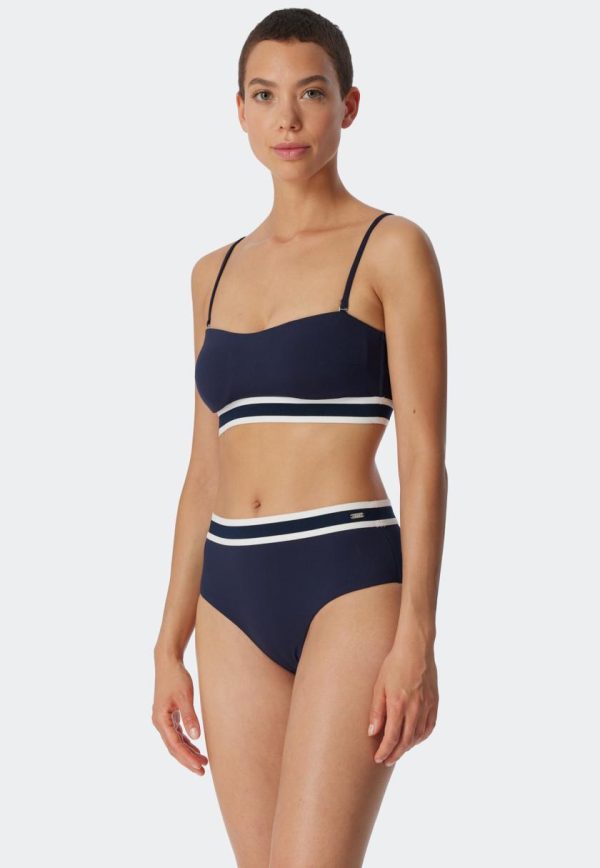 Lässiger Retro-Chic macht dieses Bandeau Bikini-Set in angesagter Ripp-Optik zu einem besonderen Lieblingsstück! Das Top mit seinem modisch gestreiften, elastischen Unterbrustband ist herrlich variabel: Die Träger können gerade, über Kreuz, als Neckholder gebunden oder ganz weggelassen werden. Softpads und Silikonbänder sorgen für Halt. Den sportlichen Look macht der Midi-Slip perfekt, der mit einem Streifen am Bund hübsch abgesetzt ist. Nachhaltige Beachwear in bester SCHIESSER-Qualität!