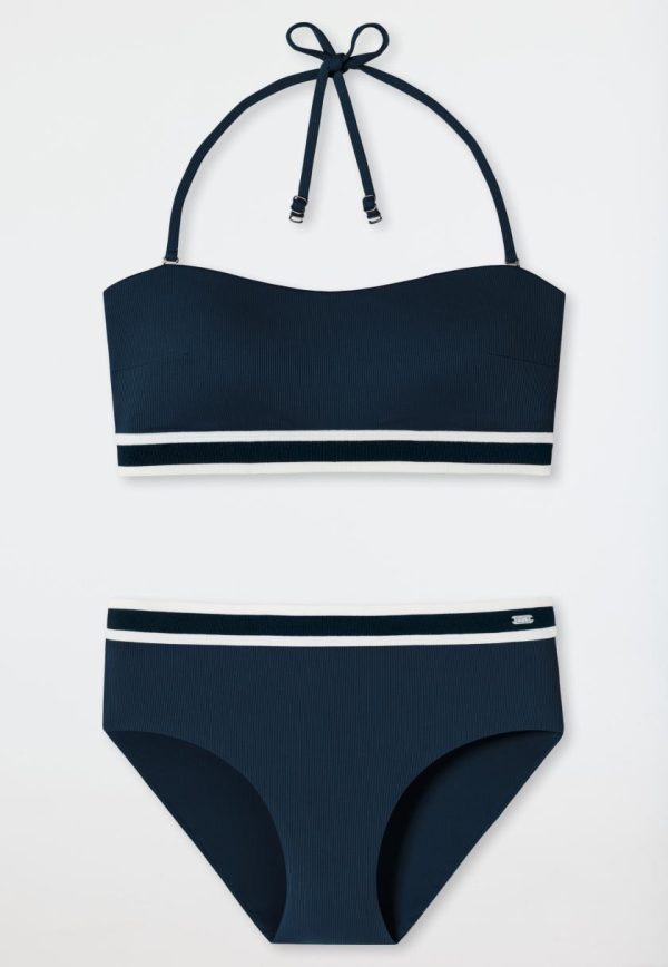 - dunkelblaues, gefüttertes Bandeau Bikini-Set für Damen in modischer Ripp-Optik