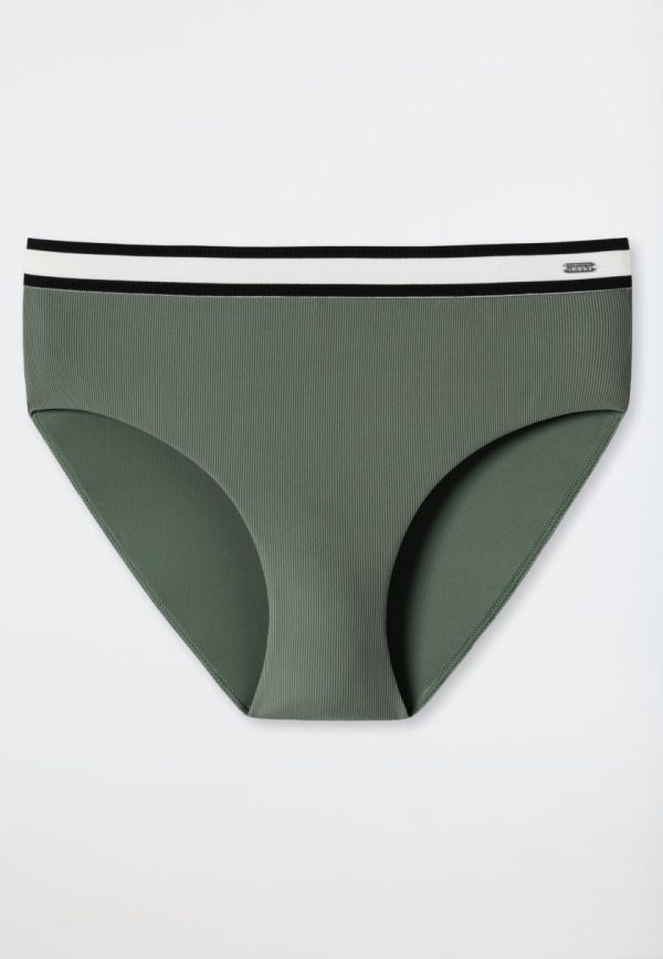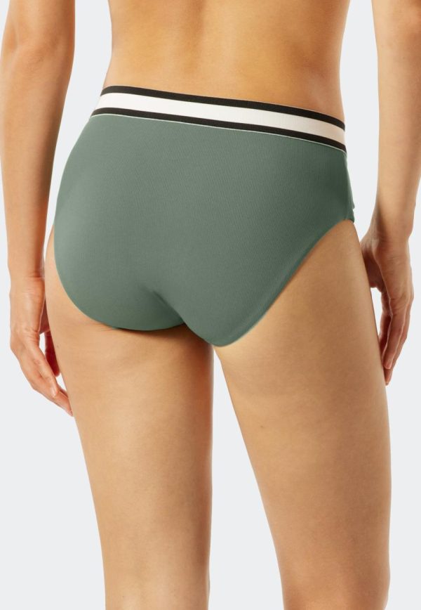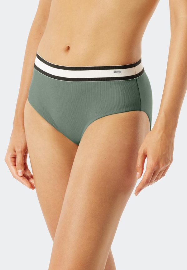 Elegant und sportlich zugleich: In diesem wunderschönen Midi-Bikinislip sind Sie der Star an Strand und Pool! Mit dem schwarz-weiß gestreiften Elastikbund und der modischen Ripp-Optik sieht er einfach gut aus. Stets perfekten Sitz versprechen der angenehme Beinausschnitt und das weiche Futter auf der Innenseite. Dank hochwertigen Recyclingmaterials punktet der Slip auch in Sachen Nachhaltigkeit. Mit dem passenden Top kombinieren und fertig ist der neue Traum-Bikini! Beste SCHIESSER-Qualität!