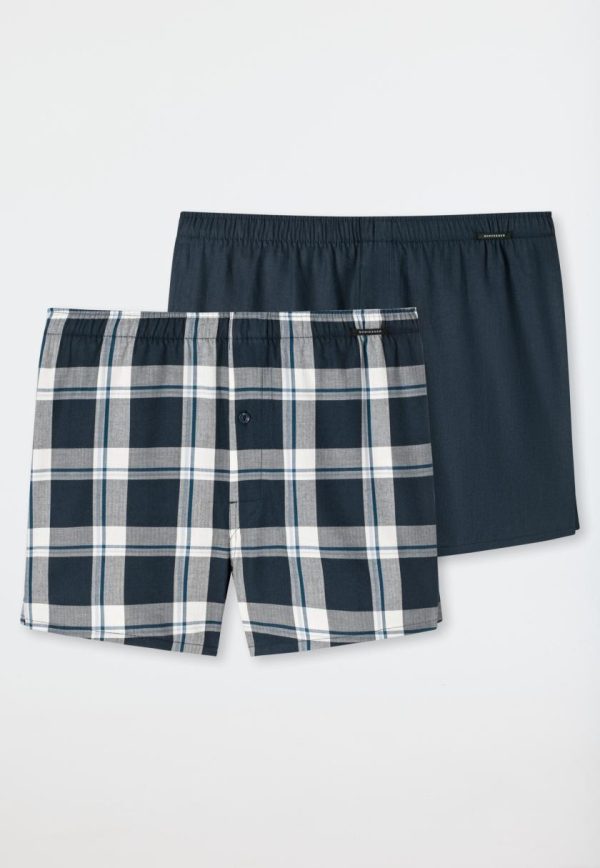 - Herren-Boxershorts im Zweierpack:1x Dunkelblau, 1x Karomuster in Blau-Weiß