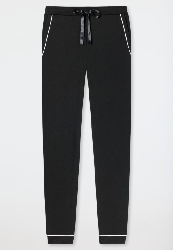 Lässige Loungemode mit eleganten Details: Diese wunderschöne, lange Damenhose ist nicht nur himmlisch bequem, sondern sieht dabei auch noch gut aus! Hingucker sind die weißen Paspeln an den schrägen Taschen und am Saum. Zum edlen Look passt das glänzende Satin-Bindeband. Auch beim Komfort bleiben keine Wünsche offen: Single Jersey aus Baumwolle und natürlichem Modal ist besonders soft und atmungsaktiv. Beste SCHIESSER-Qualität zum Mixen und Relaxen! Auch in extra-lang erhältlich!