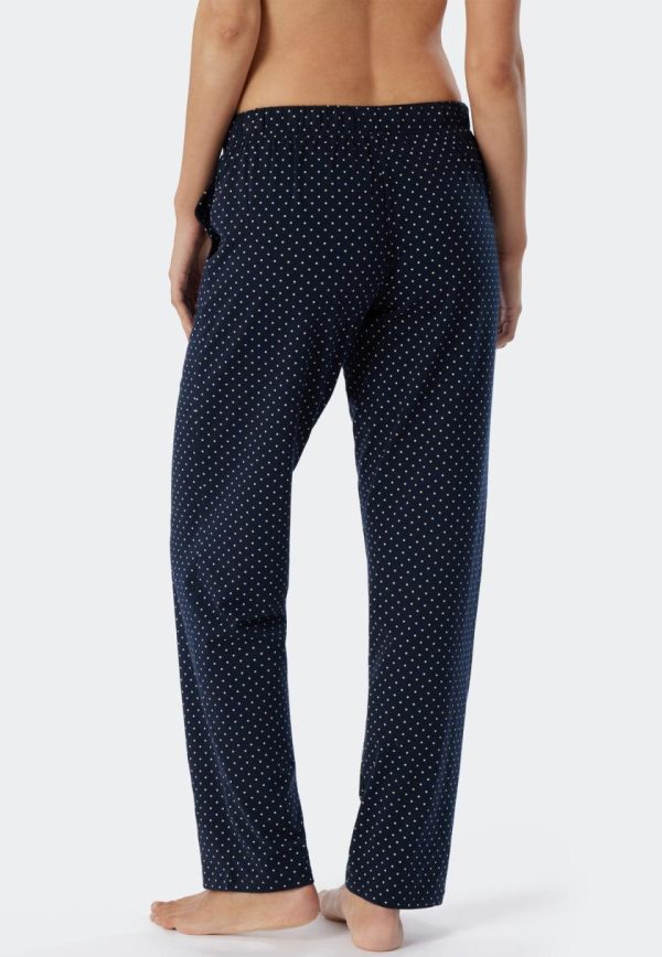 - lange Damen-Loungehose in Dunkelblau mit weißem Punkte-Alloverprint