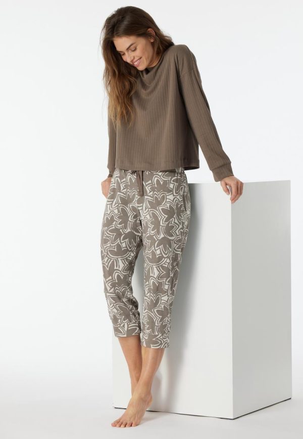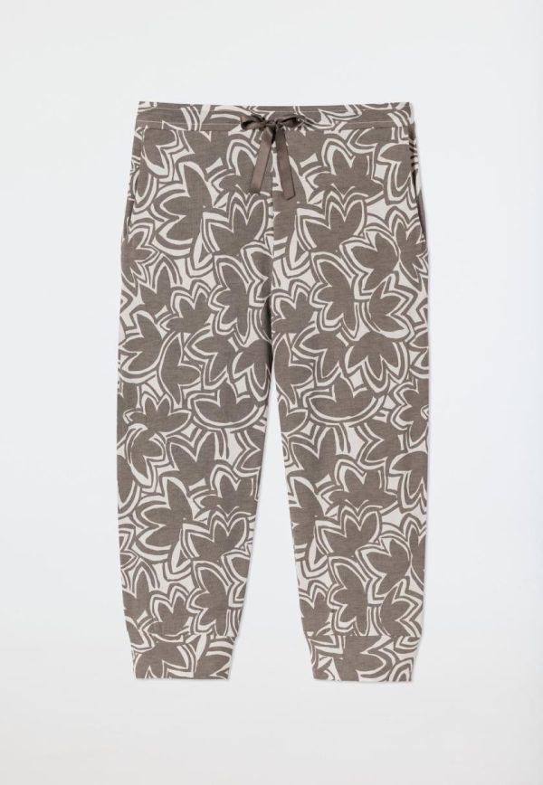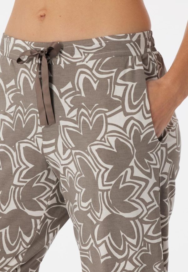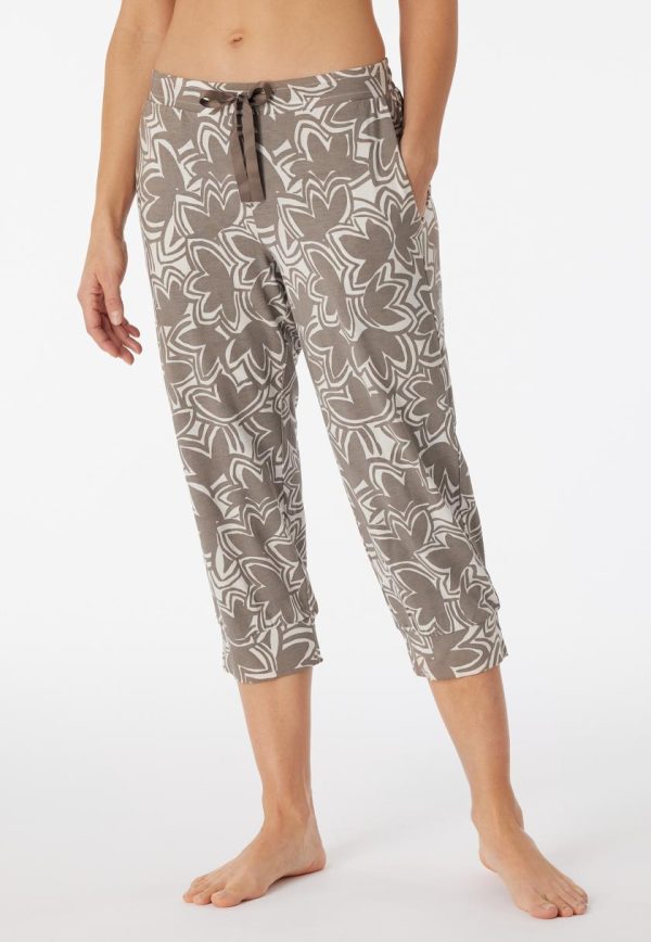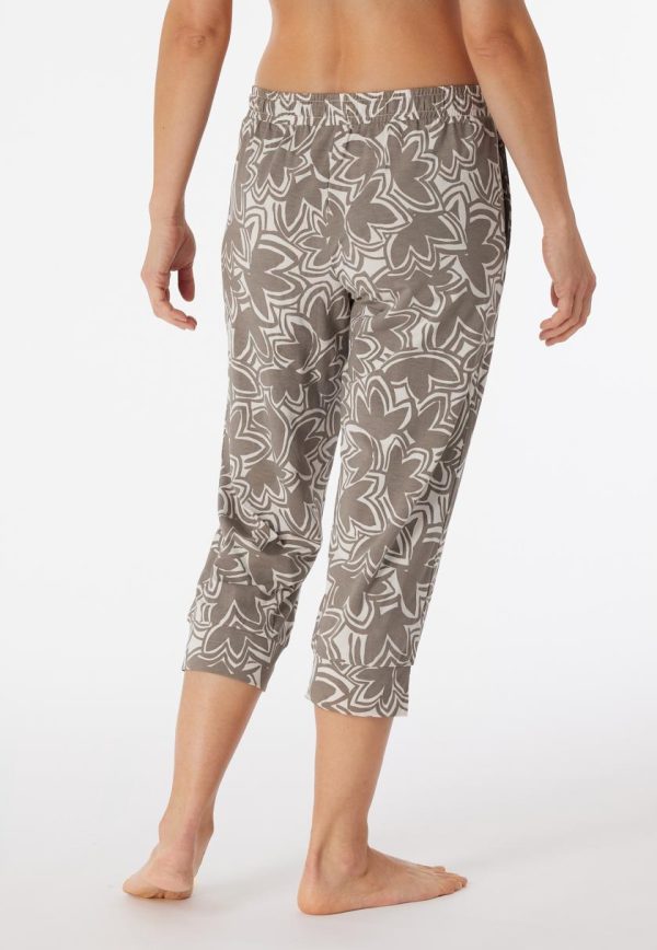 - 3/4-lange Damenhose in Taupe mit abstraktem Blumenprint