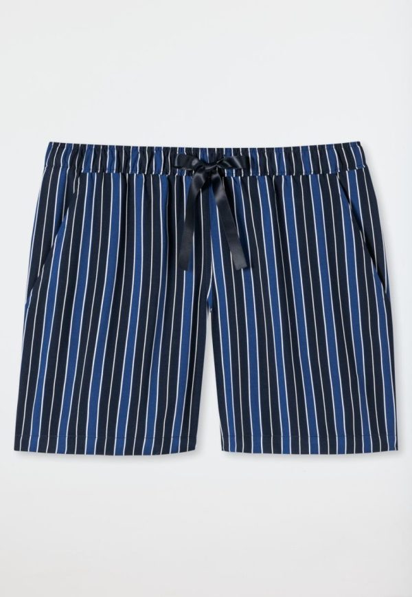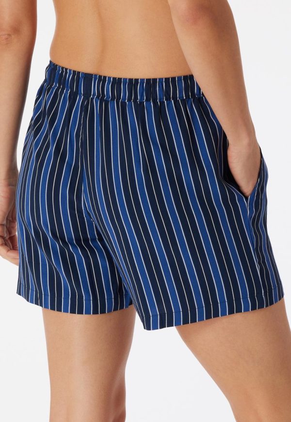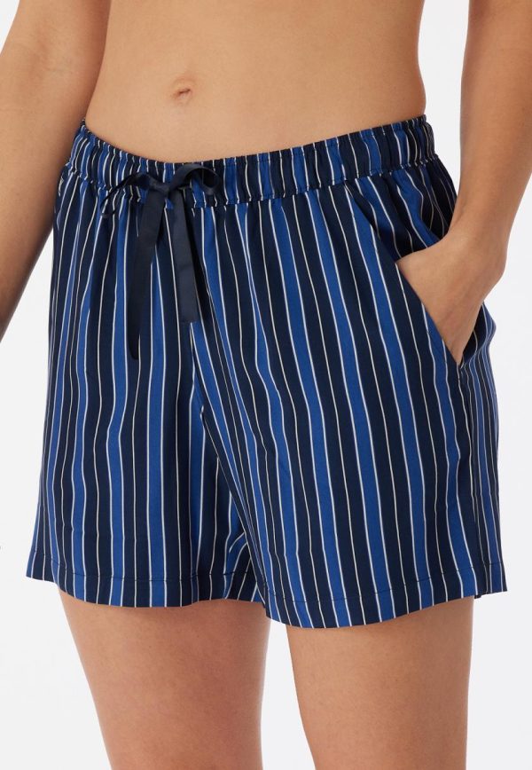 - kurze, mehrfarbige Damen-Webhose mit Streifen in Blautönen