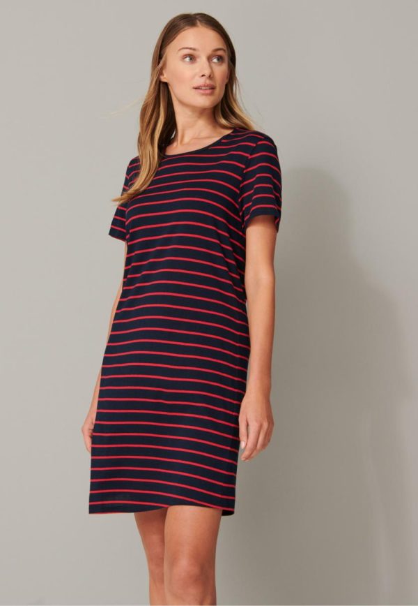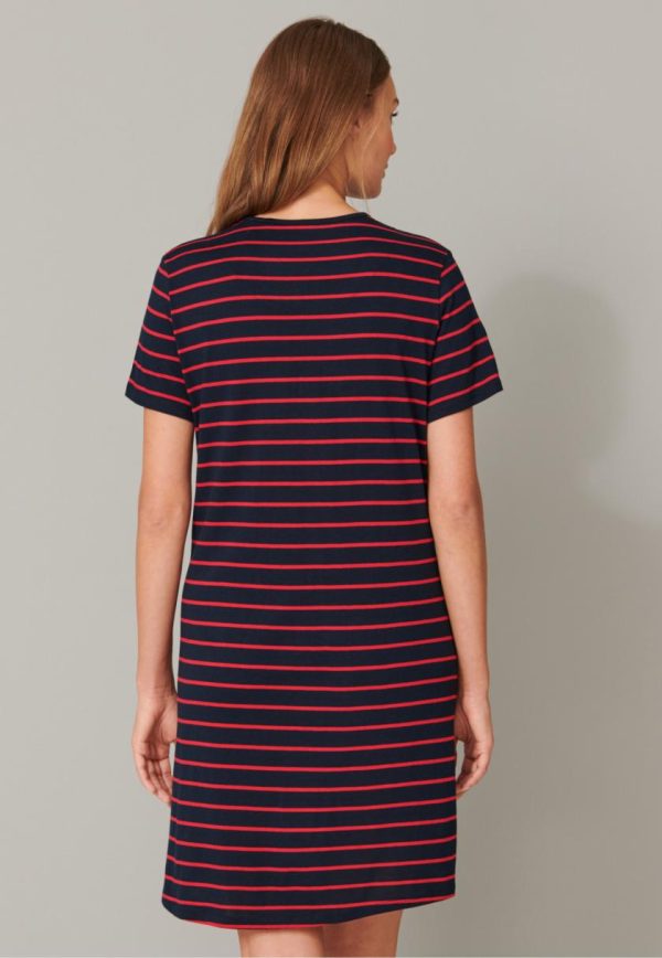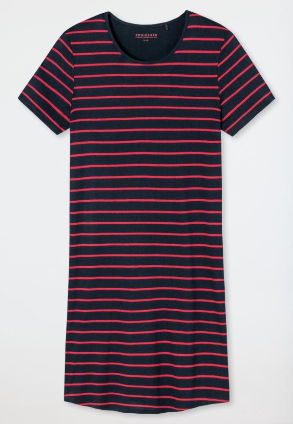SCHIESSER Nachthemden | Damen Nachthemd Kurzarm Ringel Schwarz-Rot Nightwear Multicolor