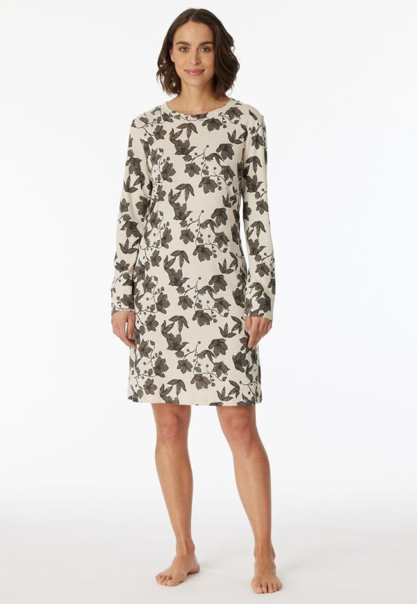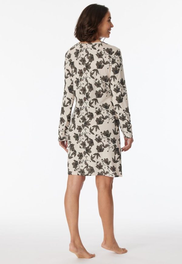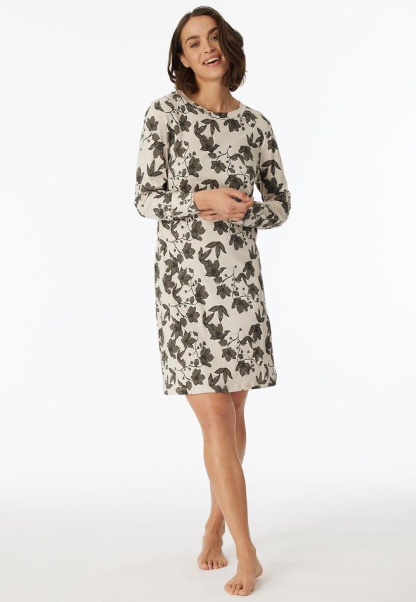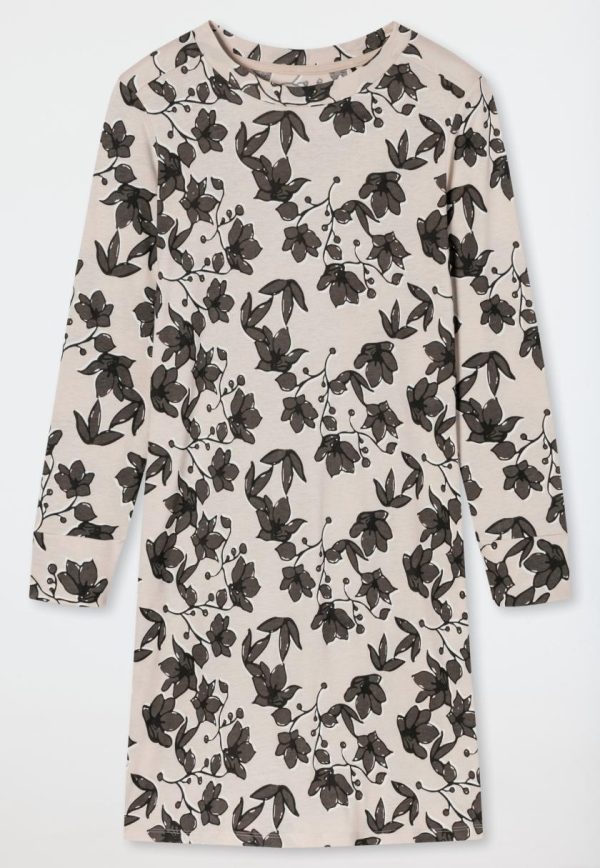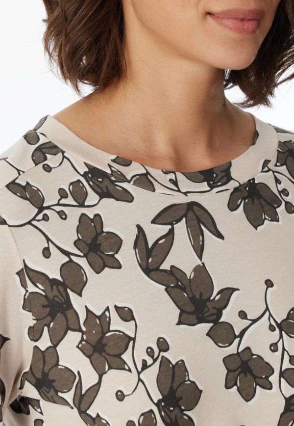 - sandfarbenes Langarm-Sleepshirt für Damen mit Blumenprint