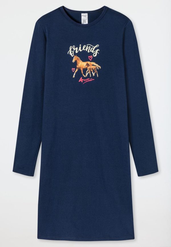 SCHIESSER Nachtwäsche | Kinder Nachthemd Langarm Organic Cotton Pferde Freunde Dunkelblau Horse World Dunkelblau