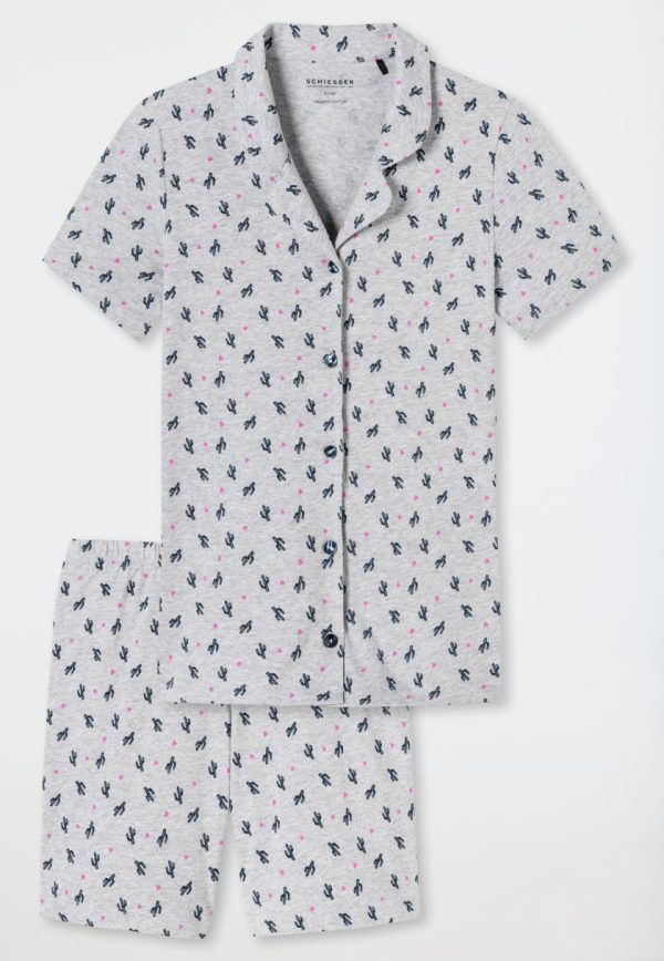 SCHIESSER Nachtwäsche | Kinder Pyjama Kurz Organic Cotton Knopfleiste Kakteen Grau-Meliert Pyjama Story Grau-mel.