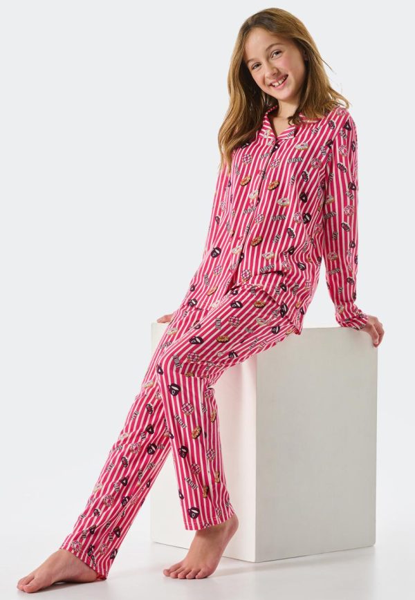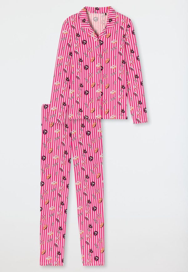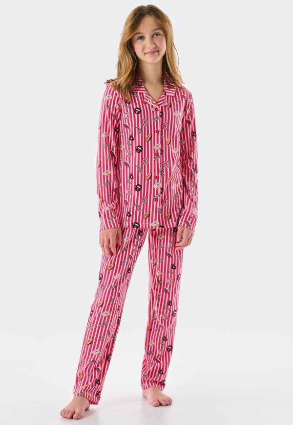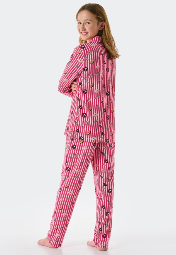 - langer, gestreifter Pyjama für Mädchen mit Donut-Motiven in Pink und Off-white