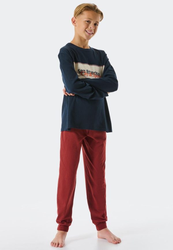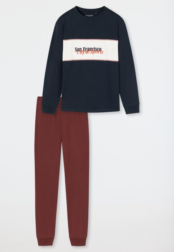 - nachtblaues Langarmshirt mit Rundhalsausschnitt und „San Fransicso City & Sports“-Schriftzug