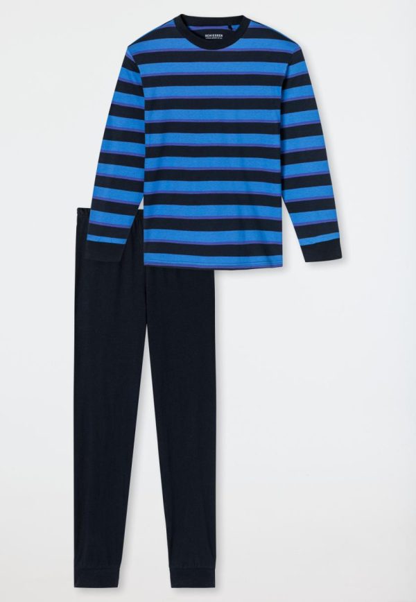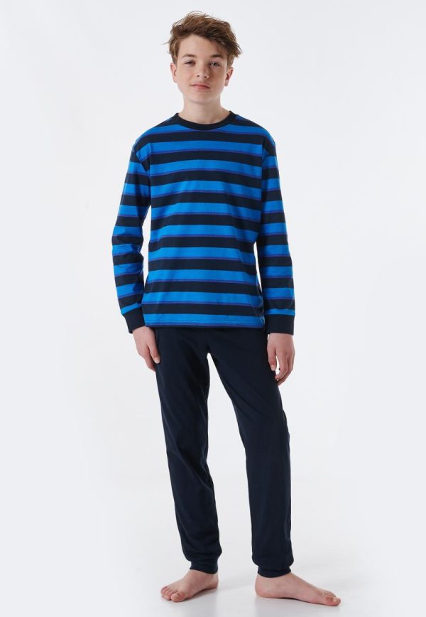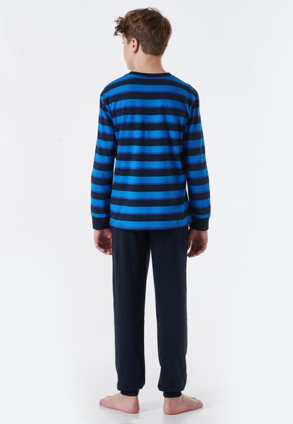 - langer Jungenschlafanzug mit gestreiftem Langarmshirt in Royalblau, Blau und Nachtblau