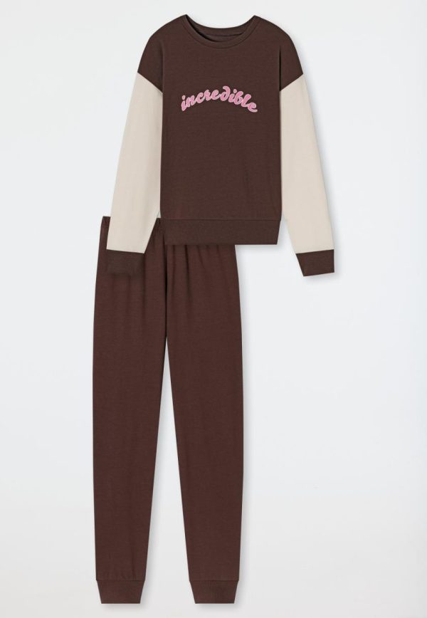 SCHIESSER Nachtwäsche | Kinder Schlafanzug Lang Sweatware Organic Cotton Bündchen Braun Teens Nightwear Braun