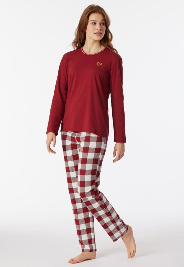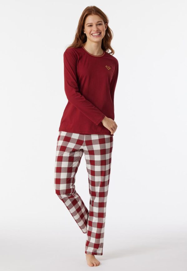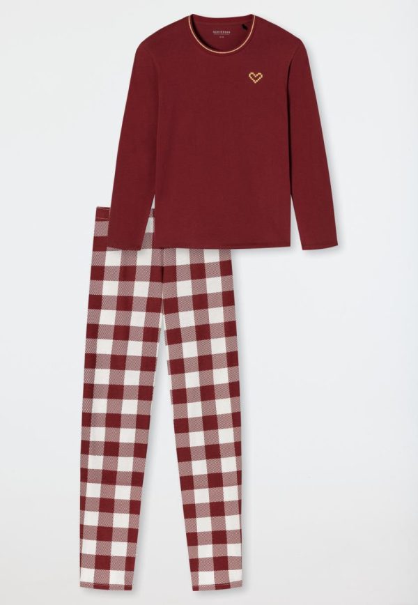 - langer, bordeauxfarbener Damen-Schlafanzug