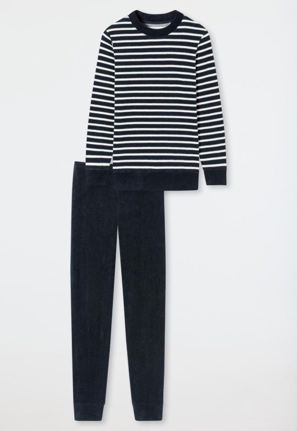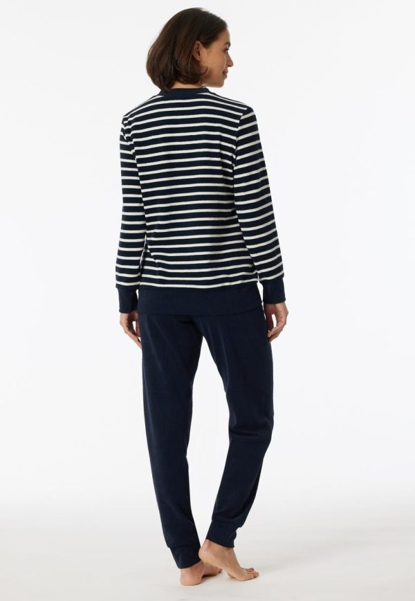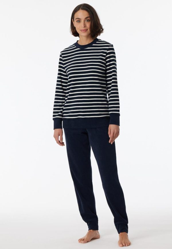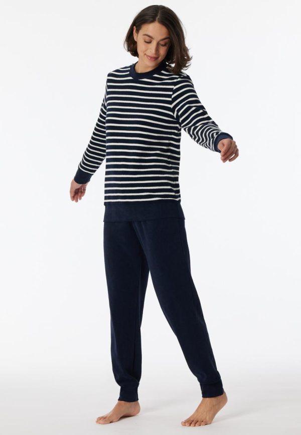SCHIESSER Schlafanzüge | Damen Schlafanzug Lang Frottee Bündchen Nachtblau Casual Essentials Nachtblau