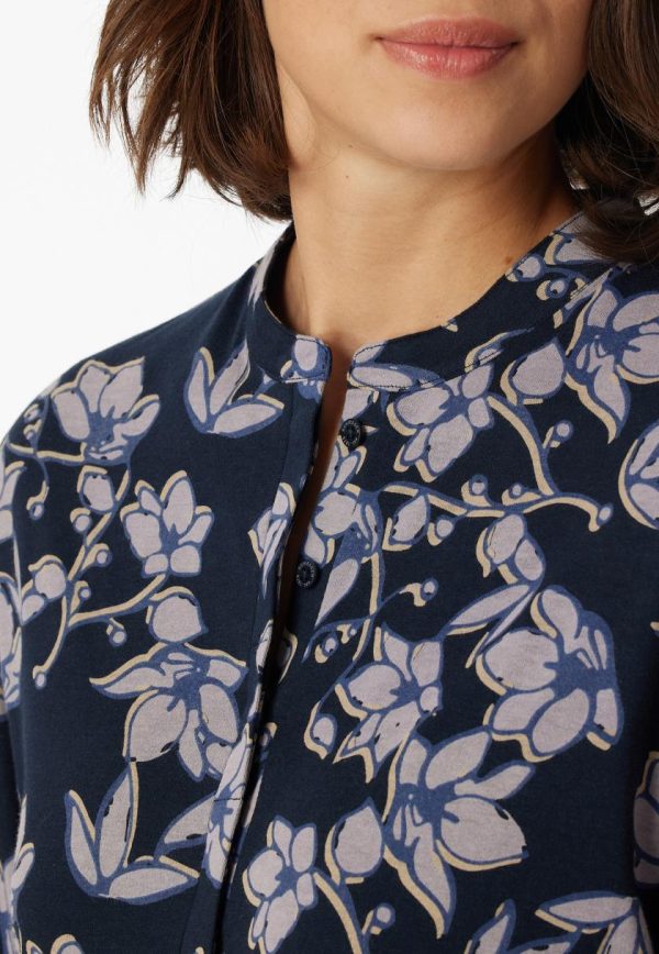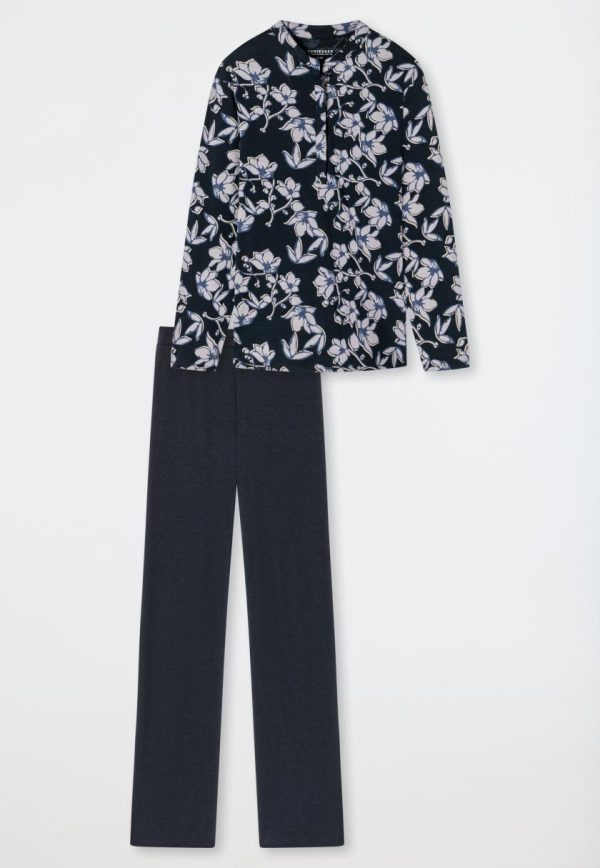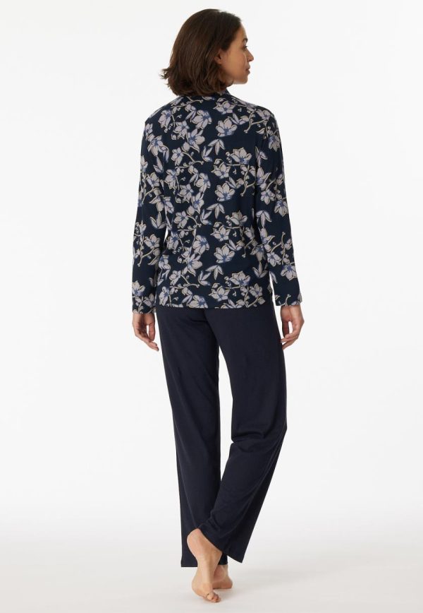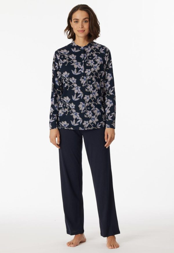 - navyfarbener, langer Damen-Schlafanzug mit Blumenprint