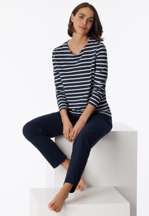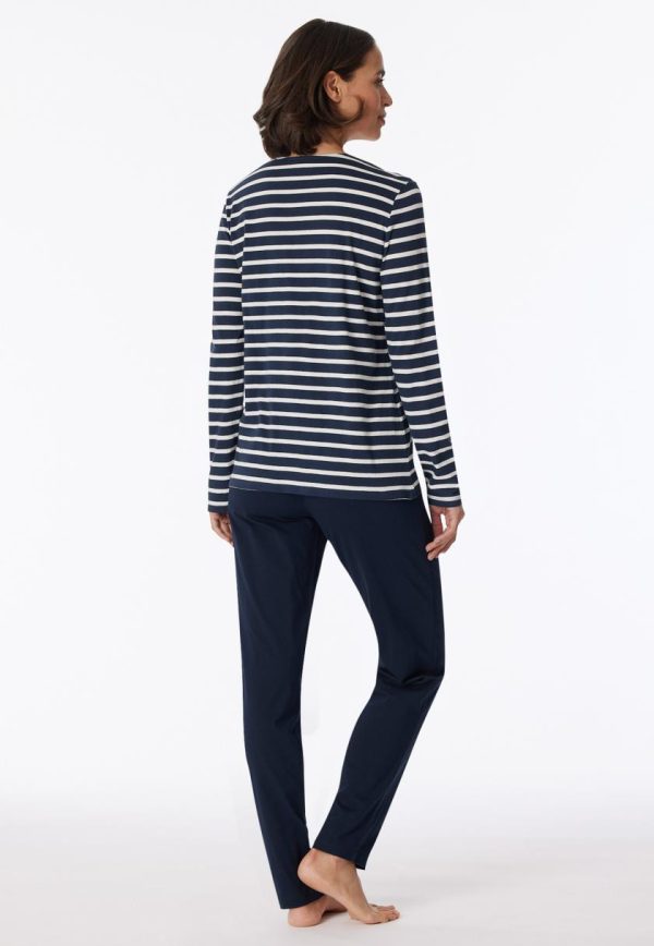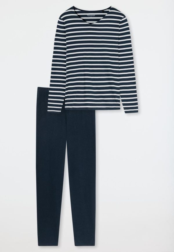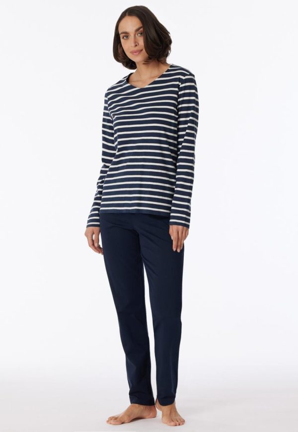 SCHIESSER Schlafanzüge | Damen Schlafanzug Lang Streifen Nachtblau Casual Essentials Nachtblau
