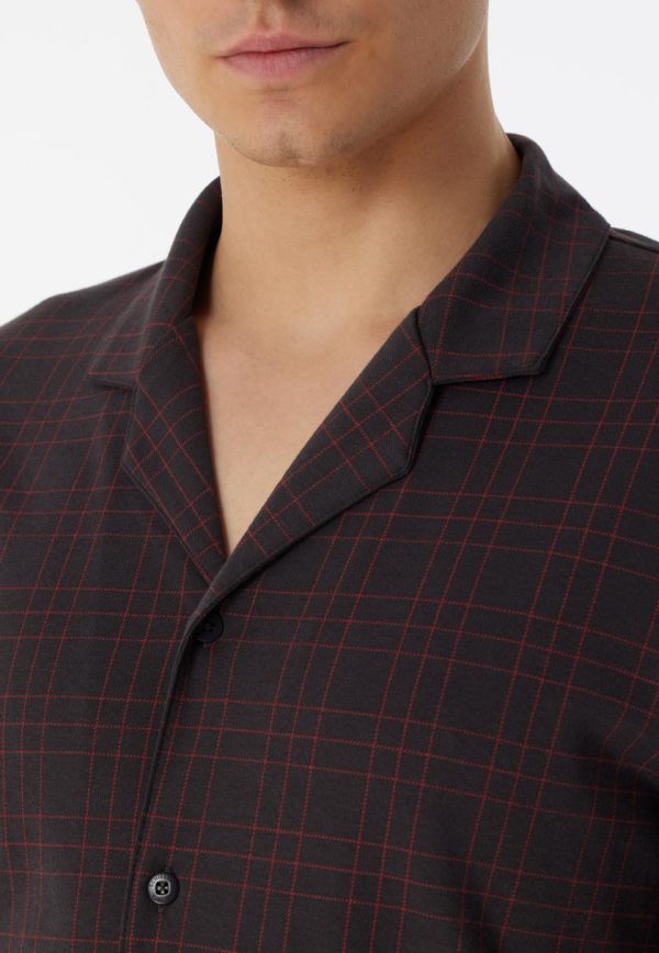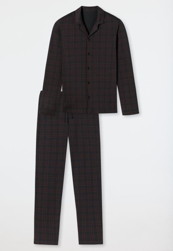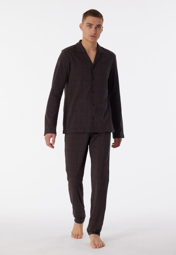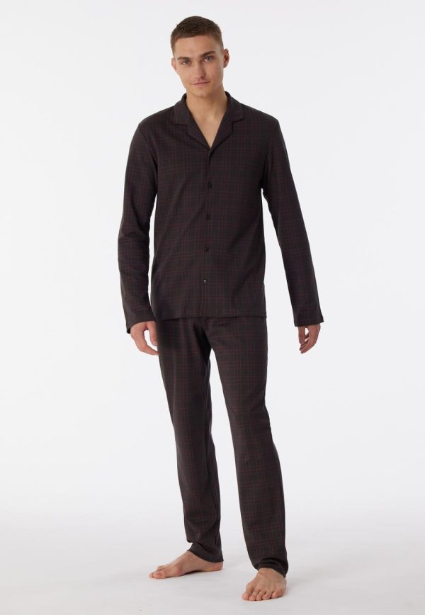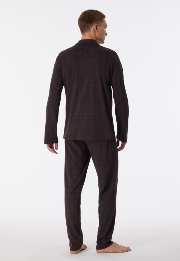 - langer, karierter Herren-Pyjama in Anthrazit und Terracotta