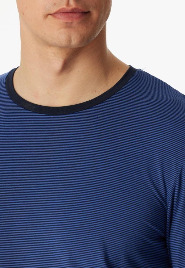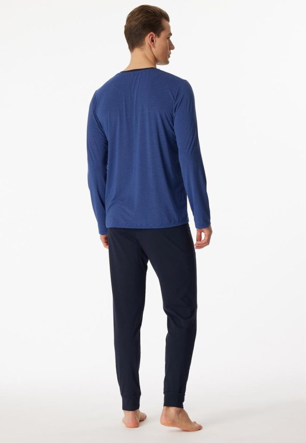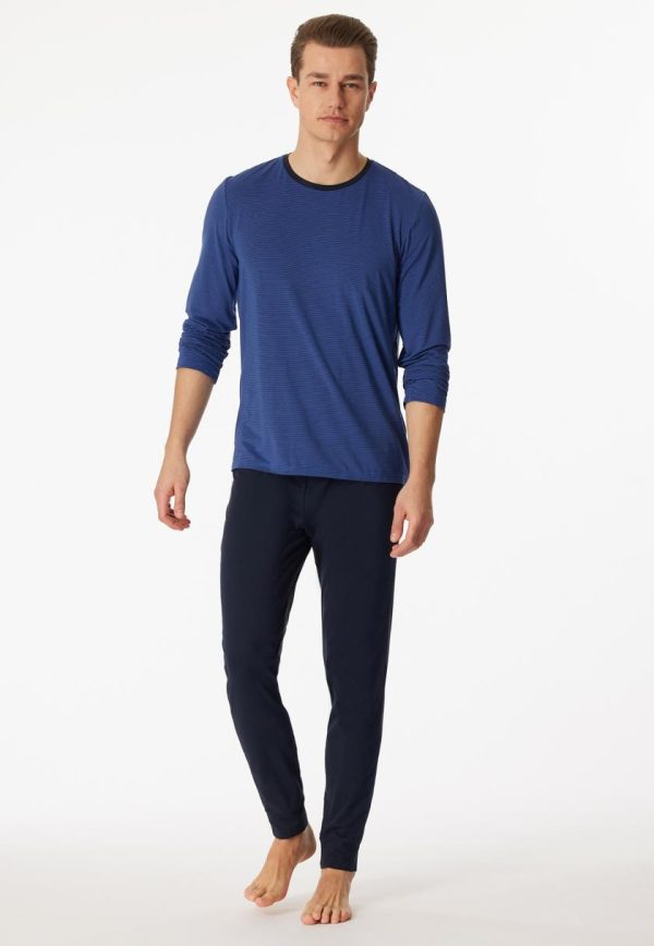 - langer, royalblauer Herren-Schlafanzug mit nachtblauen Ringeln