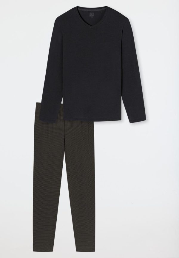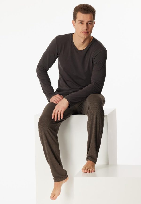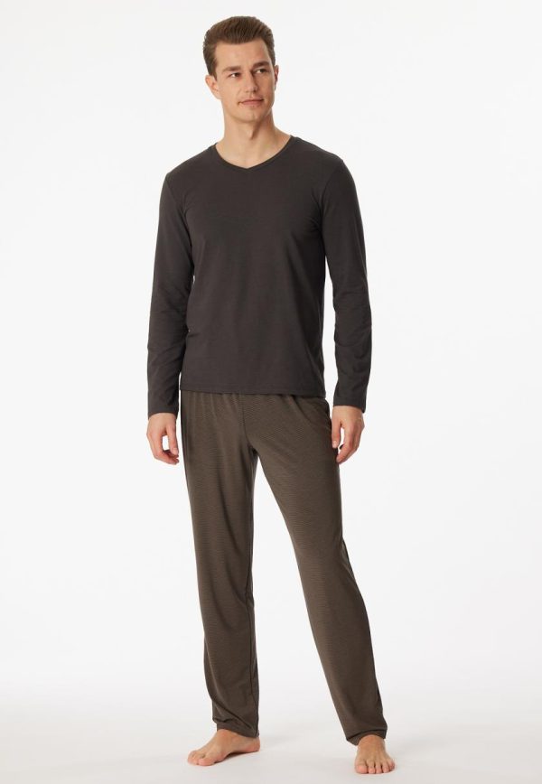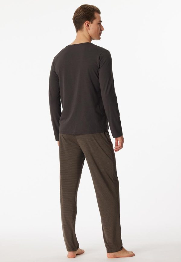 - langer, anthrazitfarbener Herren-Schlafanzug mit taupefarbenen Ringeln