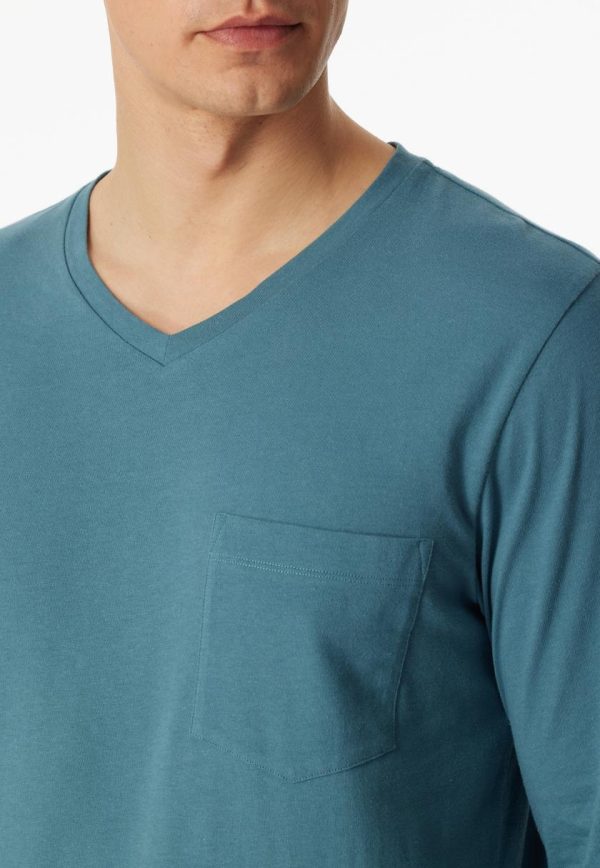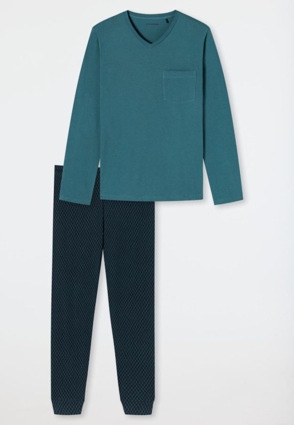 SCHIESSER Schlafanzüge | Herren Schlafanzug Lang V-Ausschnitt Bündchen Dreiecke Petrol Casual Essentials Petrol