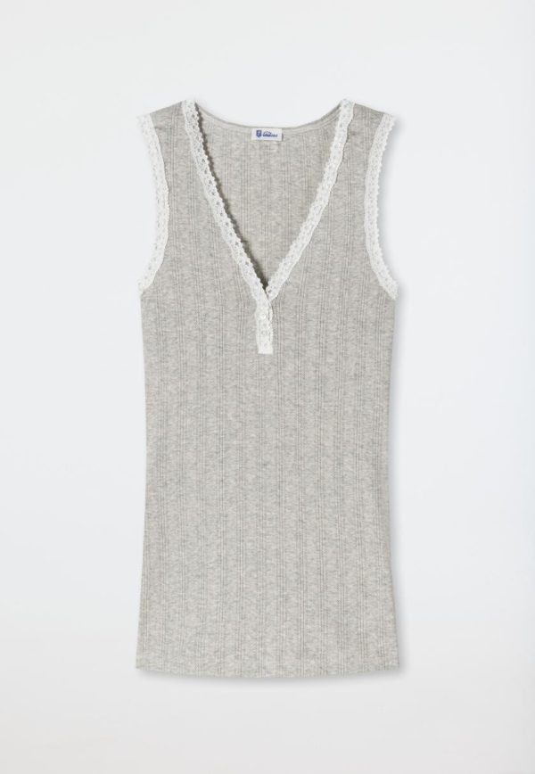 Die Liebliche! Die Revival Wäscheserie Agathe ist seit jeher unser femininer Klassiker. Charakteristisch für die Shirts, Chemisettes oder Pants sind die geblümte Bandspitze, echte Perlmuttknöpfe und der feingerippte Ajouré-Stoff. So hübsch, dass sich die Oberteile auch als Oberbekleidung gut machen. So geht eleganter Retro!