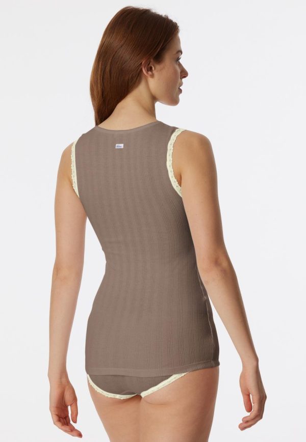 Die Liebliche! Die Revival Wäscheserie Agathe ist seit jeher unser femininer Klassiker. Charakteristisch für die Shirts, Chemisettes oder Pants sind die geblümte Bandspitze, echte Perlmuttknöpfe und der feingerippte Ajouré-Stoff. So hübsch, dass sich die Oberteile auch als Oberbekleidung gut machen. So geht eleganter Retro!