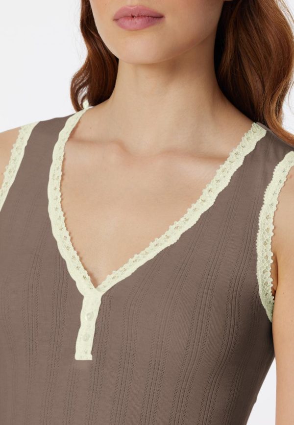 - florale Bandspitze am Dekolleté und an den Ärmelausschnitten