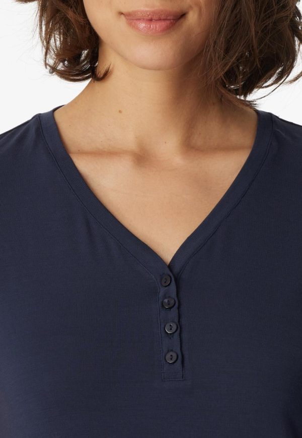 So soft, so pur: Dieses Henley ist Ihr neues Lieblings-Basic! Das Damen-T-Shirt aus der beliebten Mix+Relax Serie ist ein entspannter Begleiter. Feiner Single Jersey aus atmungsaktivem Modal mit einem Hauch Elasthan liegt wunderbar leicht auf der Haut. Mit seinem V-Ausschnitt und der funktionalen Knopfleiste sieht das Shirt herrlich lässig aus. Kombinieren Sie es mit der passenden Hose und fertig ist der relaxte Wohlfühl-Look – natürlich in bester SCHIESSER-Qualität!