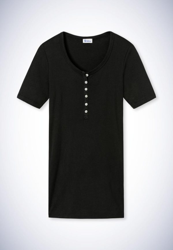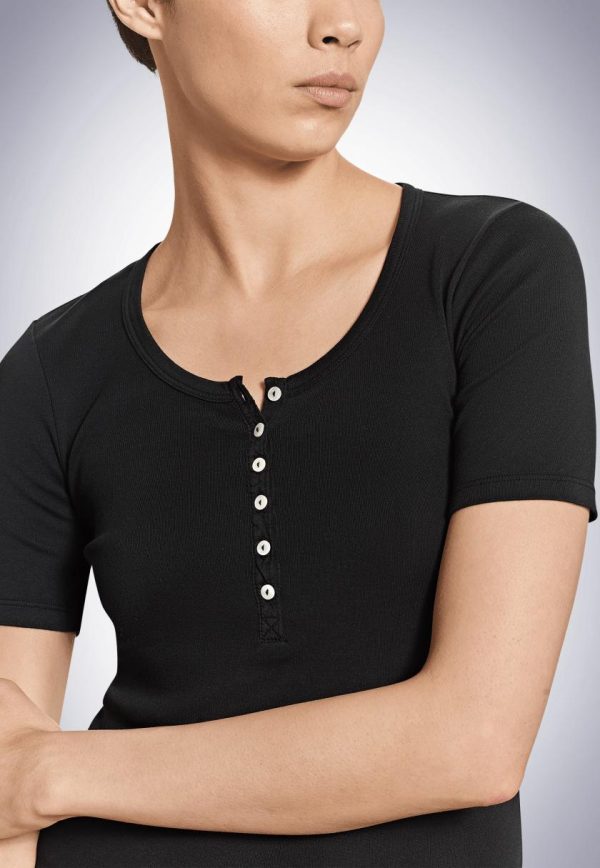 Berta – die Sportive. Ich bin ein Damen-Kurzarmshirt, das nicht fehlen darf. Schlicht, cool, unkompliziert. Ich sitze nah an deinem Körper und schmeichle dir mit softem Feinripp aus Zwirn, 100% beste Baumwolle. Die lange Knopfleiste mit echten Perlmuttknöpfen schenkt mir den typischen Henley-Charakter. Ob als Wäsche, zur Denim oder als coole Loungewear, ich mache jederzeit eine gute Figur.