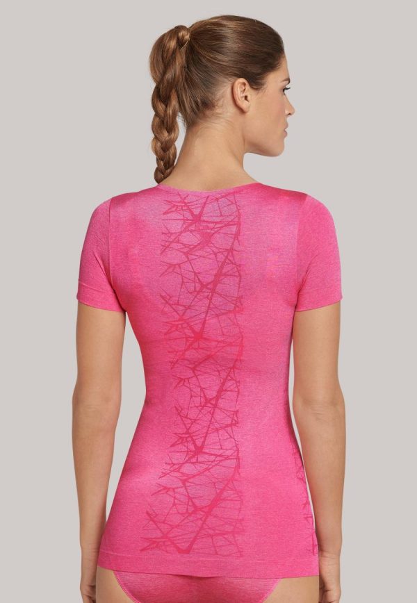Ob zum lockeren Workout, Yoga oder im turbulenten Alltag, dieses ultraleichte T-Shirt lässt aktive Damen nicht im Stich! Das Seamless-Material kommt dabei ohne störende Seitennähte aus und sorgt mit den atmungsaktiven, modisch gemusterten Mesh-Einsätzen für ein ausgewogenes Körperklima. Dank ultra-flacher Bonding-Technologie gelingt eine nahtlose Verarbeitung mit verschweißten Nähten am Halsausschnitt. Ein absoluter Fitness-Liebling in bester SCHIESSER-Qualität!
