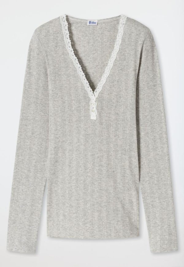 Die Liebliche! Die Revival Wäscheserie Agathe ist seit jeher unser femininer Klassiker. Charakteristisch für die Shirts, Chemisettes oder Pants sind die geblümte Bandspitze, echte Perlmuttknöpfe und der feingerippte Ajouré-Stoff. So hübsch, dass sich die Oberteile auch als Oberbekleidung gut machen. So geht eleganter Retro!