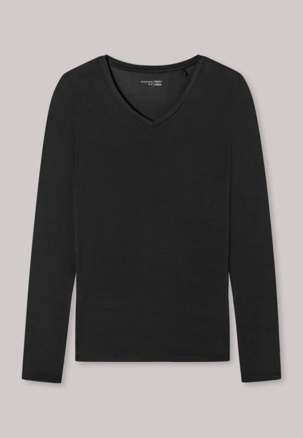 Ein anschmiegsames Must-Have ist dieses Basic-Langarmshirt für Damen! Mit seinem angenehmen Schnitt umspielt es den Körper wunderbar leicht. Der V-Ausschnitt rundet den lässigen Look stimmig ab. Das Wohlfühl-Geheimnis ist elastischer Single Jersey aus natürlichem Modal. Das supersofte Material schmeichelt der Haut, ist atmungsaktiv und pflegeleicht. Einfach mit der passenden Hose aus der Mix+Relax Serie kombinieren – fertig ist der entspannte Style in bester SCHIESSER-Qualität!