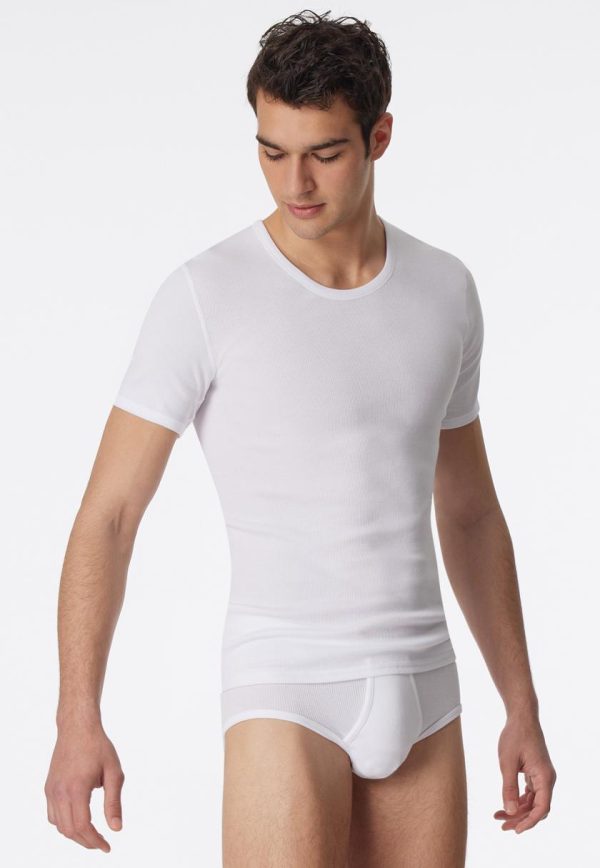 Basics in bester Qualität: Dieses weiße Herren-T-Shirt überzeugt durch einen puren Look und einen hohen Tragekomfort. 100% supergekämmte Baumwolle in Doppelripp-Qualität schenkt dem Rundhals-Shirt einen maskulinen Charakter, der kernig wirkt und gleichzeitig ein weiches, angenehmes Hautgefühl garantiert. Ein besonders bequemes Shirt für Herren, die strapazierfähige, langlebige Produkte in gewohnt bester SCHIESSER-Qualität schätzen!