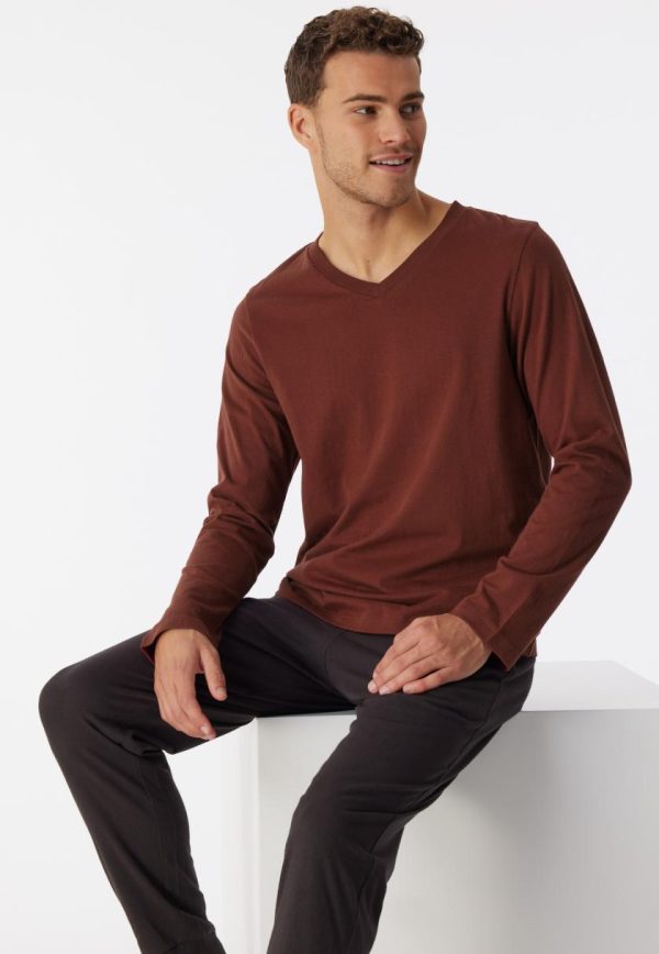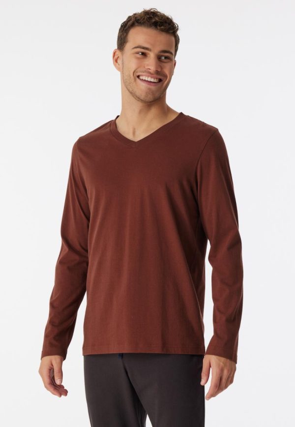 SCHIESSER Shirts | Herren Shirt Langarm Organic Cotton V-Ausschnitt Terracotta MixRelax Terracotta