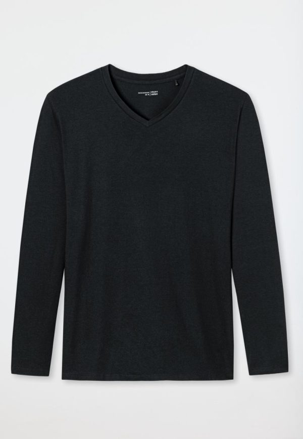 Dieses schwarze Herren-Langarmshirt ist weit mehr als ein simples Basic! Fließend weicher Single Jersey aus Baumwolle und Modal verspricht dabei höchsten Tragekomfort, fühlt sich angenehm glatt an und bleibt dank 5 % Elastan jederzeit in Topform. Der V-Ausschnitt unterstreicht den männlichen Look. Ein authentisches, bequemes T-Shirt in bester SCHIESSER-Qualität!