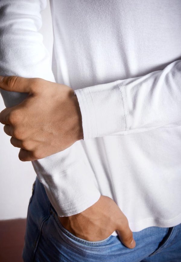 Ich bin´s, Karl-Heinz. Du kennst mich bestimmt schon, ich bin der Kultklassiker von 1923, verkörpere beste Handwerkskunst und feinste Qualität im zeitgemäßen Look. Mit mir entscheidest du dich für ein Langarmshirt aus stückgefärbtem Feinripp, aus 100% supergekämmtem Organic Cotton. Akzente setzen meine blauen Streifen, Perlmuttknöpfe und die traditionellen Flachränder als Armabschlüsse. Du siehst also: Ich bin nicht irgendwer, ich bin das Original unter den Originalen.
