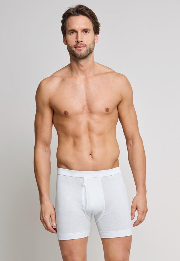 Klassische Tagwäsche mit Komfort-Garantie: Diese weiße, kurze Herrenunterhose überzeugt durch ein besonders langlebiges, strapazierfähiges Material und einen maskulinen Charakter. 100% supergekämmte Baumwolle in Doppelripp-Qualität und der Softbund fühlen sich dabei angenehm weich an auf der Haut und bleiben auch nach der 95-Grad-Wäsche in Topform. Die ideale Tagwäsche für Herren, die höchsten Tragekomfort in gewohnt bester SCHIESSER-Qualität schätzen.