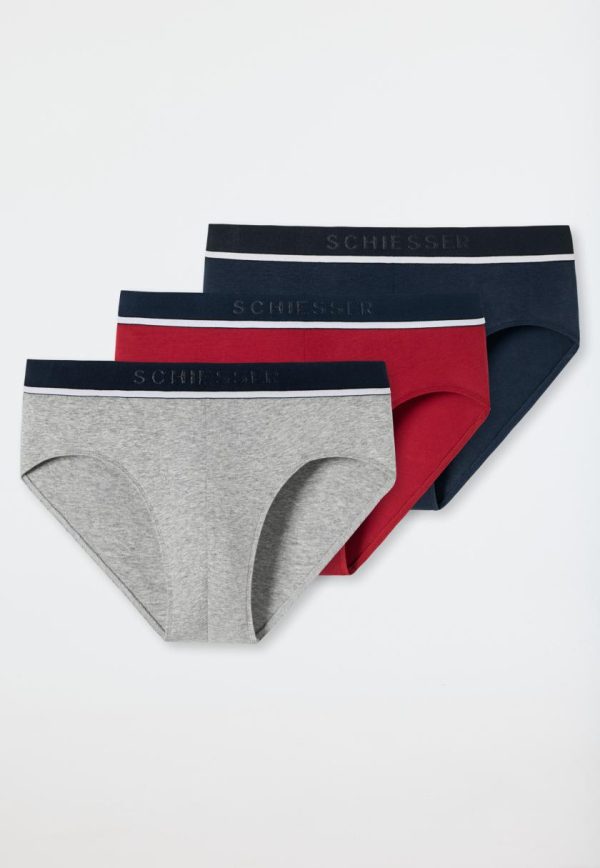 Sportlich schick im Dreierpack! Diese modischen Herren-Slips aus der beliebten „95/5“ Serie stehen für erstklassigen Tragekomfort. Ob in Rot, Blau oder Grau-Melange – mit ihrem blauen Logo-Webgummibund sitzen die Unterhosen jederzeit perfekt am Körper. Das elastische Single Jersey-Material aus 95% natürlichem Organic Cotton und 5% Elastan fühlt sich besonders angenehm auf der Haut an. Eine rundum bequeme Tagwäsche für alle, die auf bewährt beste SCHIESSER-Qualität setzen!