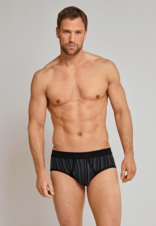 SCHIESSER Slips | Herren Sportslips Feinripp er-Pack Mit Eingriff Schwarz Gestreift Original Classics Schwarz
