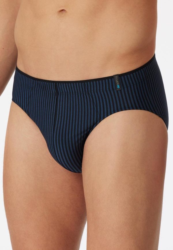 Dieser schwarz-navy gestreifte Supermini aus der SCHIESSER-Serie „Long Life Soft“ überzeugt anspruchsvolle Herren durch ein innovatives Material und eine optimale Passform. Dank der einzigartigen ReaLasting-Cotton-Verarbeitung gewährt der Slip nicht nur ein perfektes Feuchtigkeitsmanagement, sondern passt sich zudem in elastischem Single Jersey sanft jeder Bewegung des Körpers an. Eine pilling-arme, angenehm glatte Herrenunterhose, die auch nach vielen Waschgängen in Bestform bleibt!