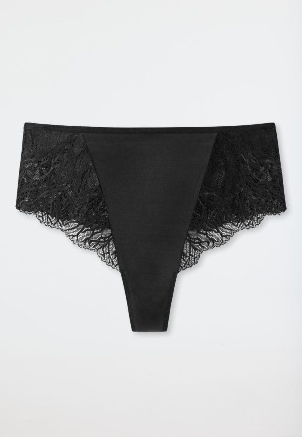 Bereit für den großen Auftritt? Dieser raffinierte Highwaist Thong für Damen verbindet Glamour mit Komfort! Der knappe, sexy Schnitt mit dem angesagt hohen Bund bringt Ihre Figur wunderbar zur Geltung. Feine, transparente Spitze mit glitzernden Lurex-Details vorne an den Seiten und am kompletten Rückteil schenkt ihm das gewisse Etwas. Dank Recycling-Anteil ist sie zudem nachhaltig. Vorne sorgt elastisches Material in edler Satin-Optik für perfekten Sitz. Lingerie in bester SCHIESSER-Qualität!