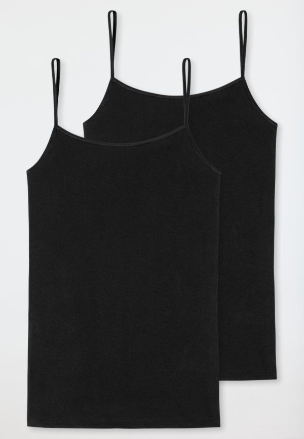 Basics zum Wohlfühlen: Dieses beiden Spaghetti-Tops aus der beliebten SCHIESSER-Serie „95/5“ sind Unterhemden mit hohem Tragekomfort! 95% seidigweicher Organic Cotton und 5% Elastan versprechen dabei ein herrlich softes Gefühl auf der Haut sowie eine optimale Passform. Ein bequemer, unkomplizierter Doppelpack für Damen, die nachhaltige, puristische Wäsche lieben!