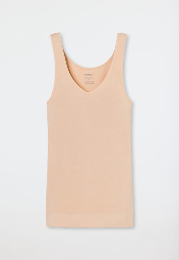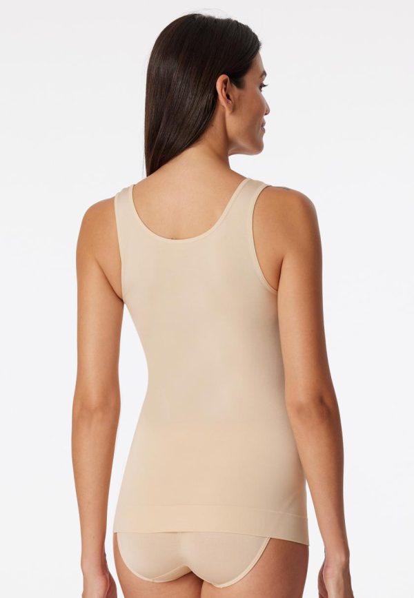 Dieses sandfarbene Tank-Top aus der „Seamless light“-Serie zaubert mit einem ausgeklügelten Materialmix nicht nur eine schöne Silhouette, sondern bleibt zudem den ganzen Tag in Topform! In hochwertiger Rundstrickware schmeichelt das Top besonders soft der Haut und verspricht mit seinen nahtlosen Abschlüssen ganz ohne lästiges Hinaufrollen und Einschneiden eine perfekte Passform. Genau das Richtige für Damen, die sanft formende, bequeme Wäsche in bester SCHIESSER-Qualität lieben!