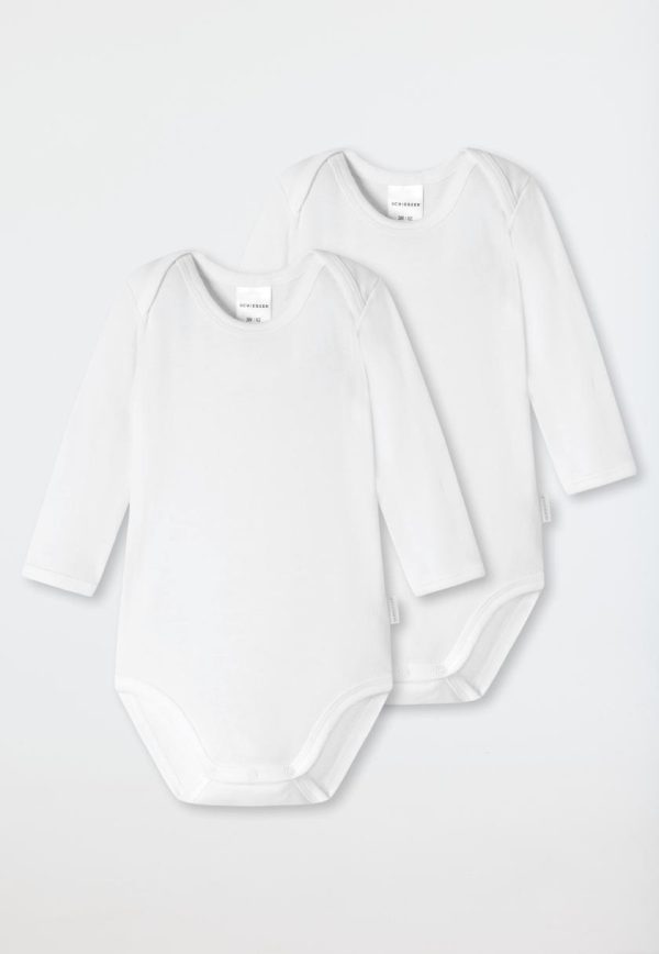 - weiße Langarm-Babybodys Unisex im praktischen Doppelpack