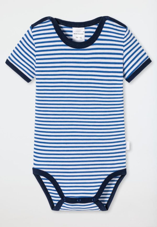 Süßer Ringel-Spaß für die Kleinsten! Dieser kurze, aqua-farbene Unisex-Babybody überzeugt im maritimen Look. Mit seinen kontraststarken Einfässen in Dunkelblau ist die Tagwäsche ein echter Hingucker. Die weichen Wohlfühlfasern aus Baumwolle und Bambus schmeicheln der Haut unserer Mini-Entdecker und garantieren auch an warmen Tagen ein tolles Tragegefühl. Hochwertige Druckknöpfe an den Schultern und im Schritt machen das Wickeln zum echten Kinderspiel. Rundum in bester SCHIESSER-Qualität!