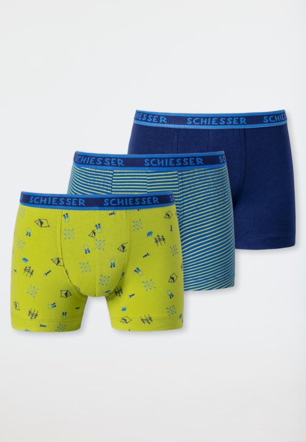 Für richtig gute Laune sorgen diese lässigen Jungen-Shorts im praktischen Dreierpack! Ob unifarben in Dunkelblau, fröhlich geringelt oder in Limetten-Grün mit tollen Camping-Motiven – dieses Multipack ist genau das Richtige für unsere kleinen Abenteurer. Das Single Jersey-Material aus nachhaltigem Organic Cotton und der komfortable Webgummibund sorgen für einen perfekten Sitz und jede Menge Tragekomfort beim Spielen und Toben – rundum in bester SCHIESSER-Qualität!